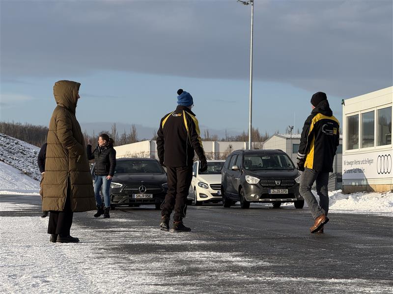 Am 8. Januar 2026 fand ein Fahrsicherheitstraining der Mitarbeiterinnen und Mitarbeiter unserer Niederlassung Erfurt im Fahrsicherheitszentrum Thüringen des ADAC Hessen-Thüringen e.V. statt. Der Tag begann mit einer herzlichen Begrüßung durch die Trainer, die sich Zeit nahmen, die Ziele des Seminars zu erläutern und die Motivationen sowie Erfahrungen der Teilnehmer zu erfragen.